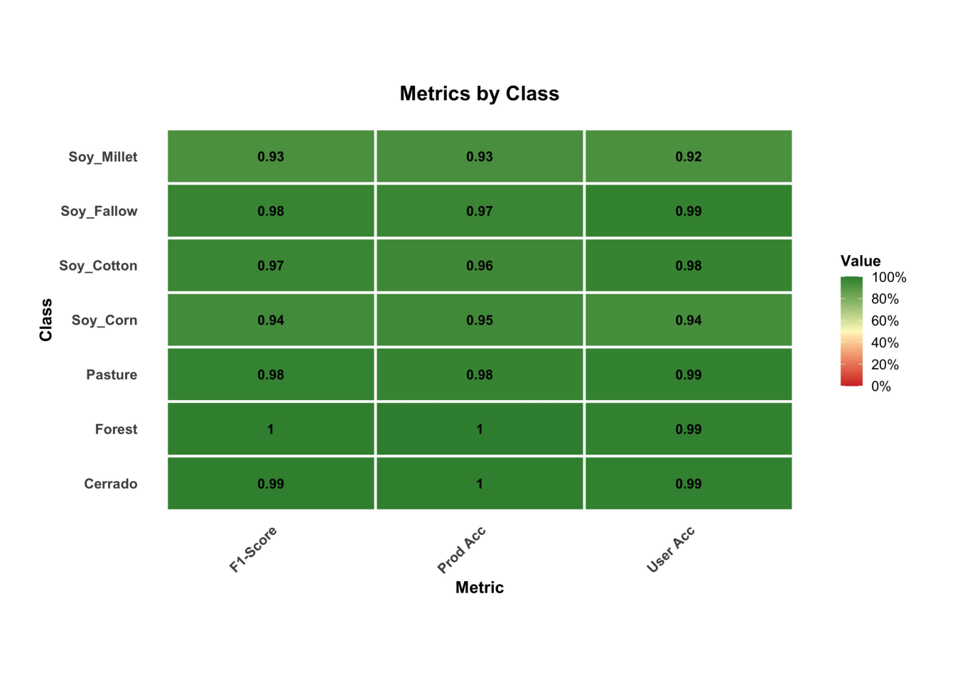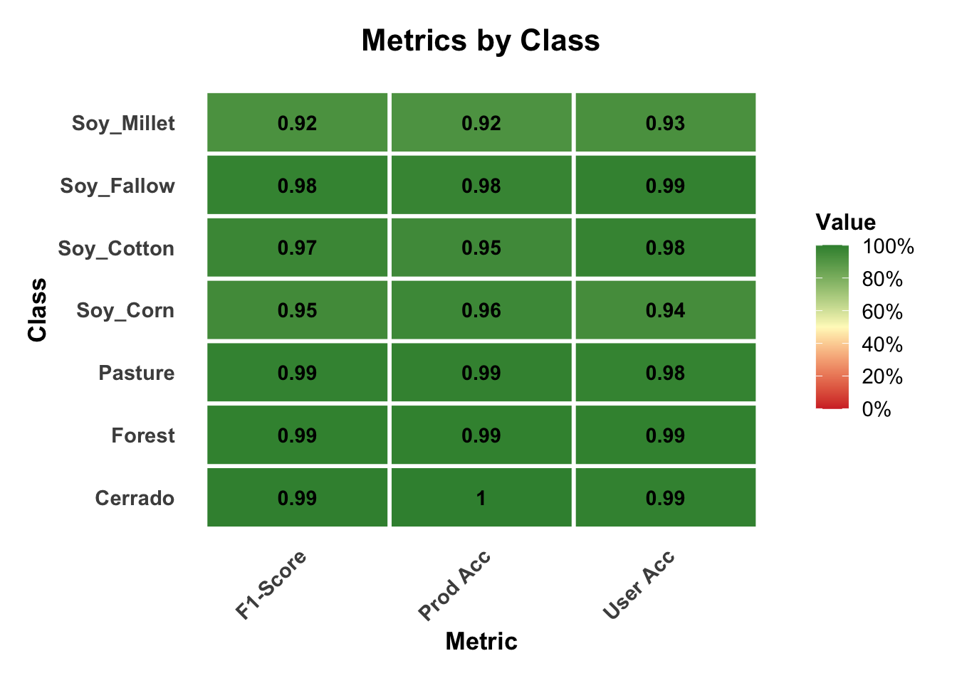 # Plot the metrics by class